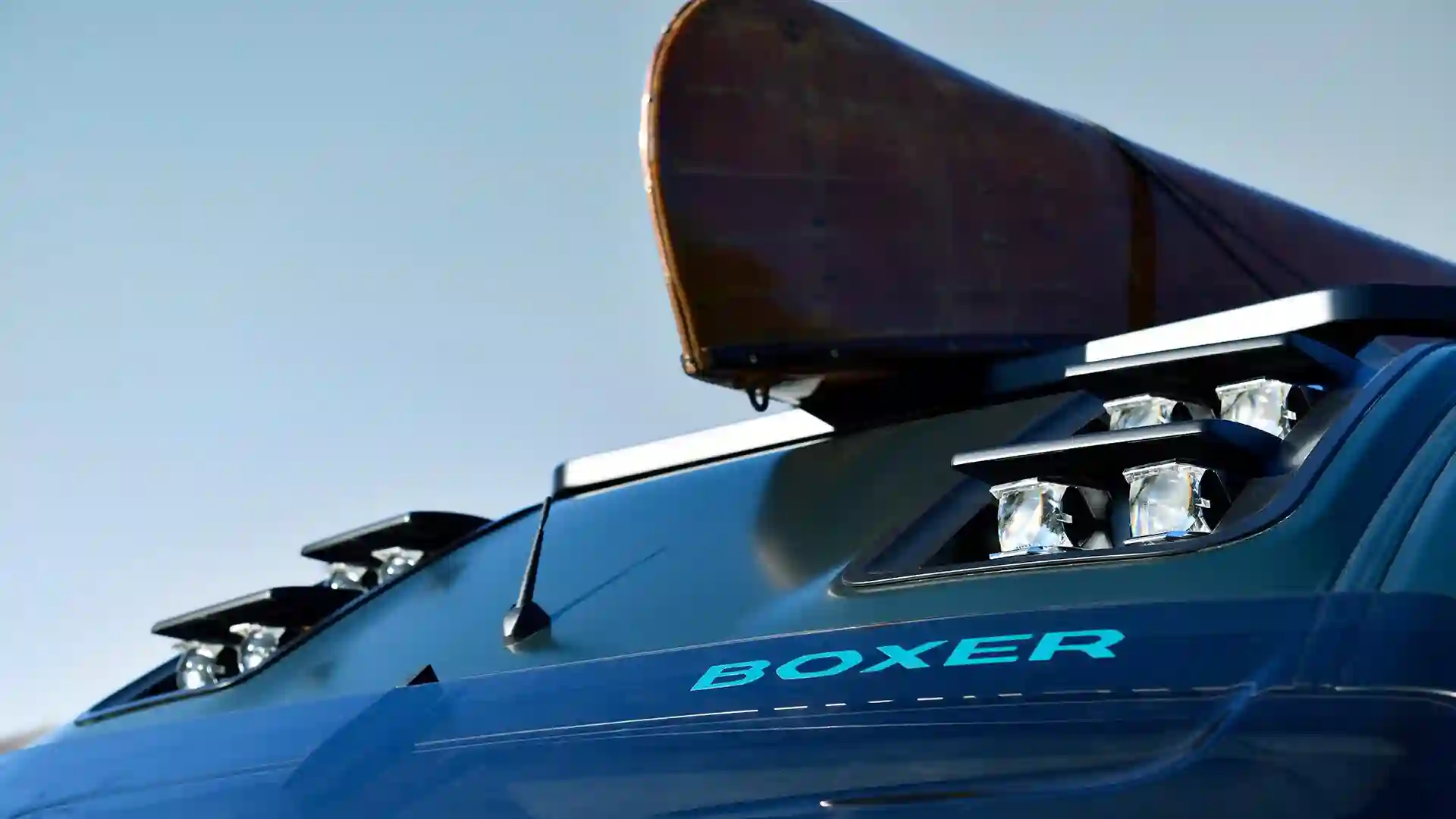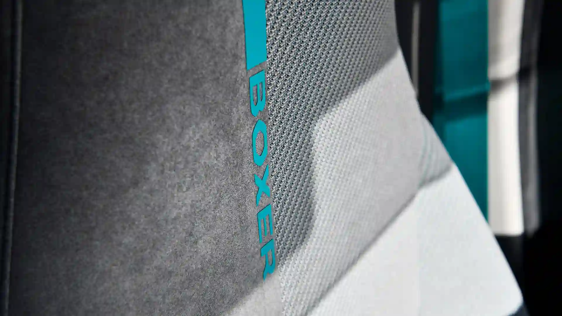 Салон концепт-кара в виде капсулы оформлен в бледных, расслабляющих тонах, благодаря чему ярко контрастирует с экстерьером. Деревянные элементы создают уют, а стилизованная отделка салона Alcantara® GREVAL GREY? оставляет о себе только приятные впечатления. Логотипы BOXER в оттенке MINT? перенесены на ткань с помощью печати, которая используется крупнейшими текстильными брендами. Ремни безопасности стилизованы цветными вставками в оттенке MINT?, что придает им яркости.